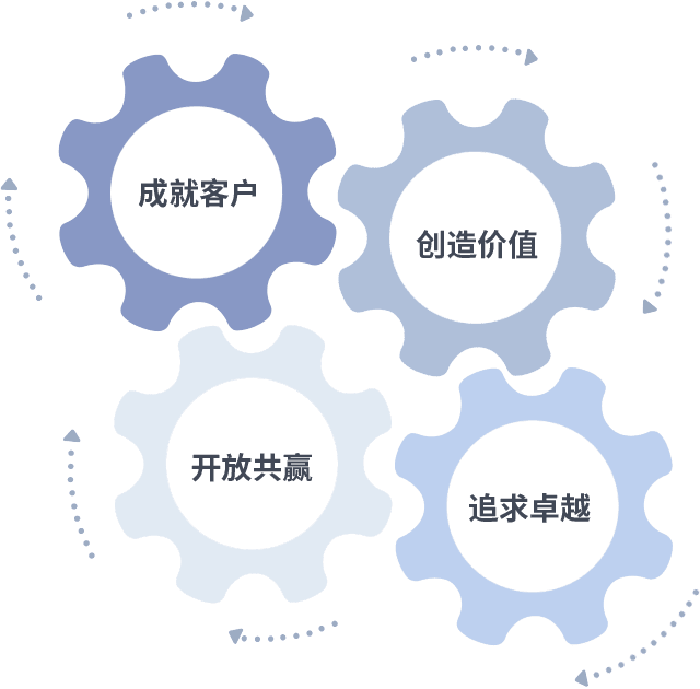 成就客户是一切决策的出发点,创造价值是衡量所有工作的标准,追求卓越是大奖国际18dj18做事做人的态度,开放共赢是大奖国际18dj18的格局也是最终的结果。价值观的齿轮环环相扣,推动着组织里的每个人不断向前。